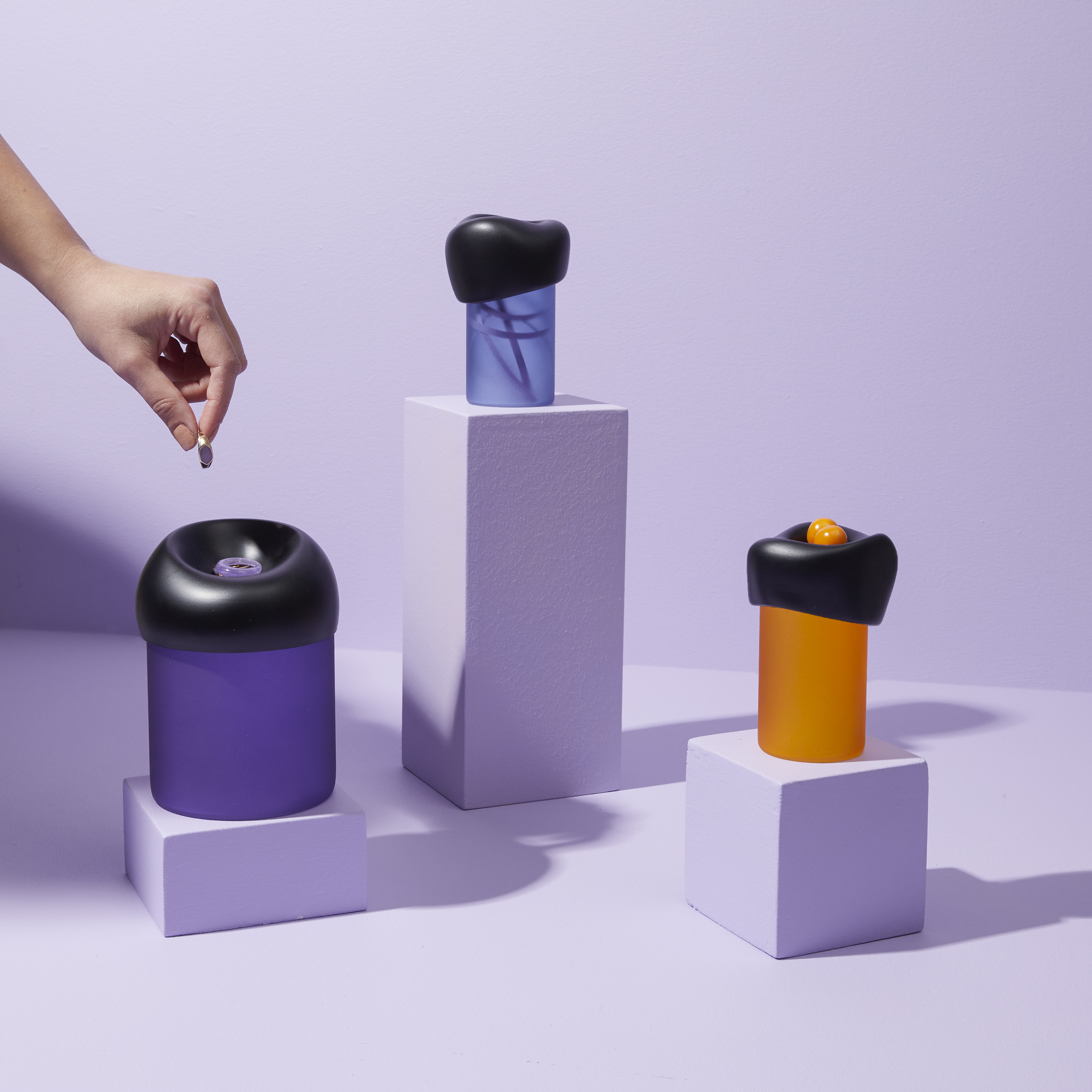 The glassware reflects the designer’s need to surround itself with more colorful materials and shapes and work with therapeutic methods that bring her joy in the design process.