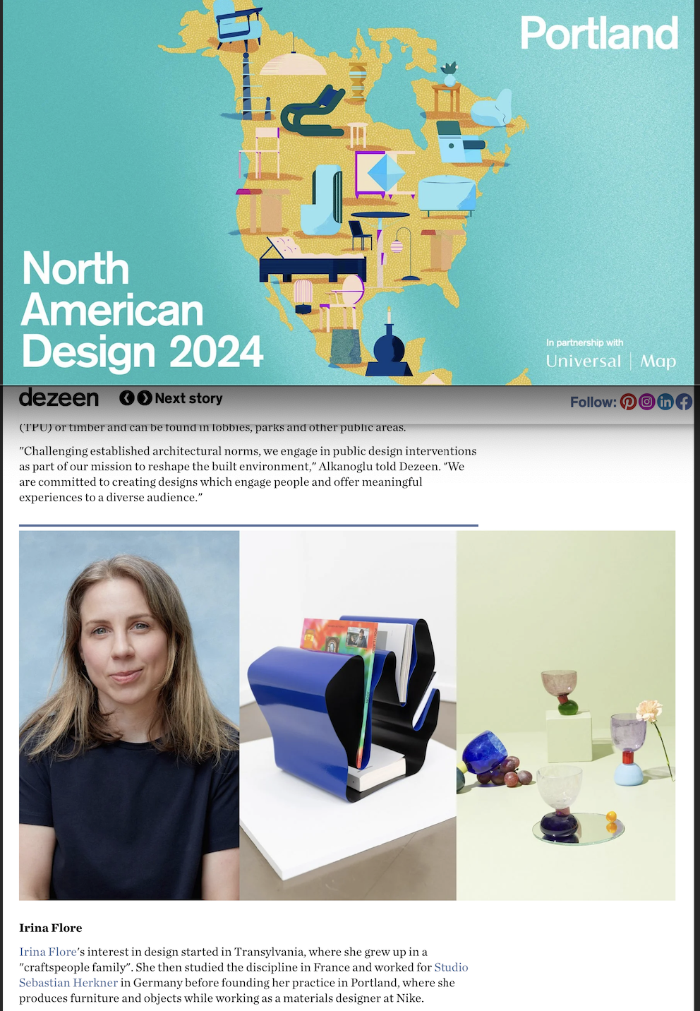 ︎Irina Flore's work has been featured in over 60 prestigious publications, including Dezeen, Sight Unseen, Curbed, Elle Decoration, Surface, AD France, Gray, Damn, and many more.